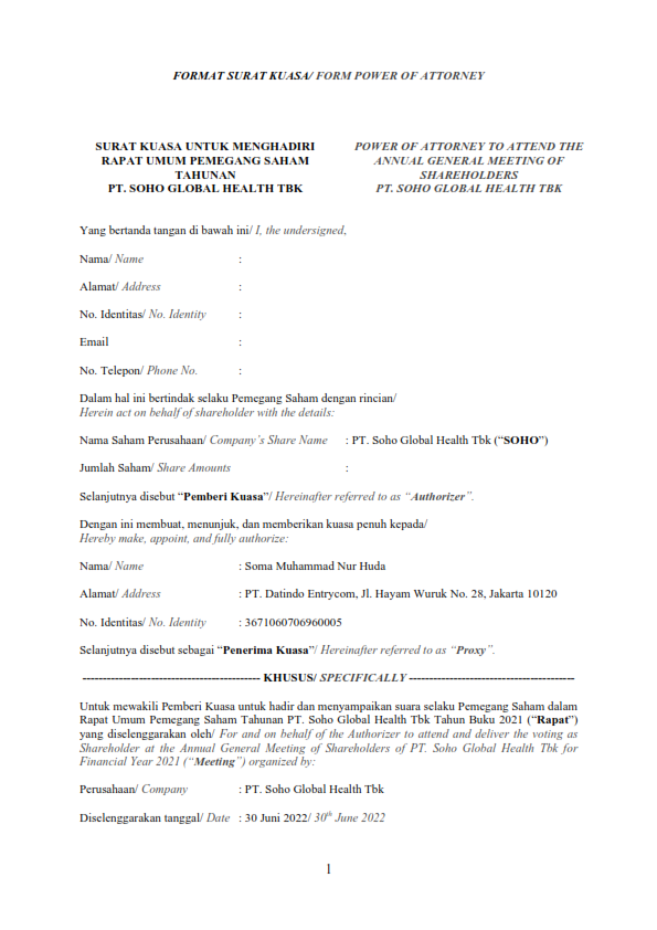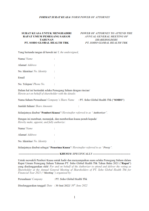 [TEMPLATE] Power Attorney to Attend Annual General Meeting Shareholders Financial Year 2021 - Independent Representative