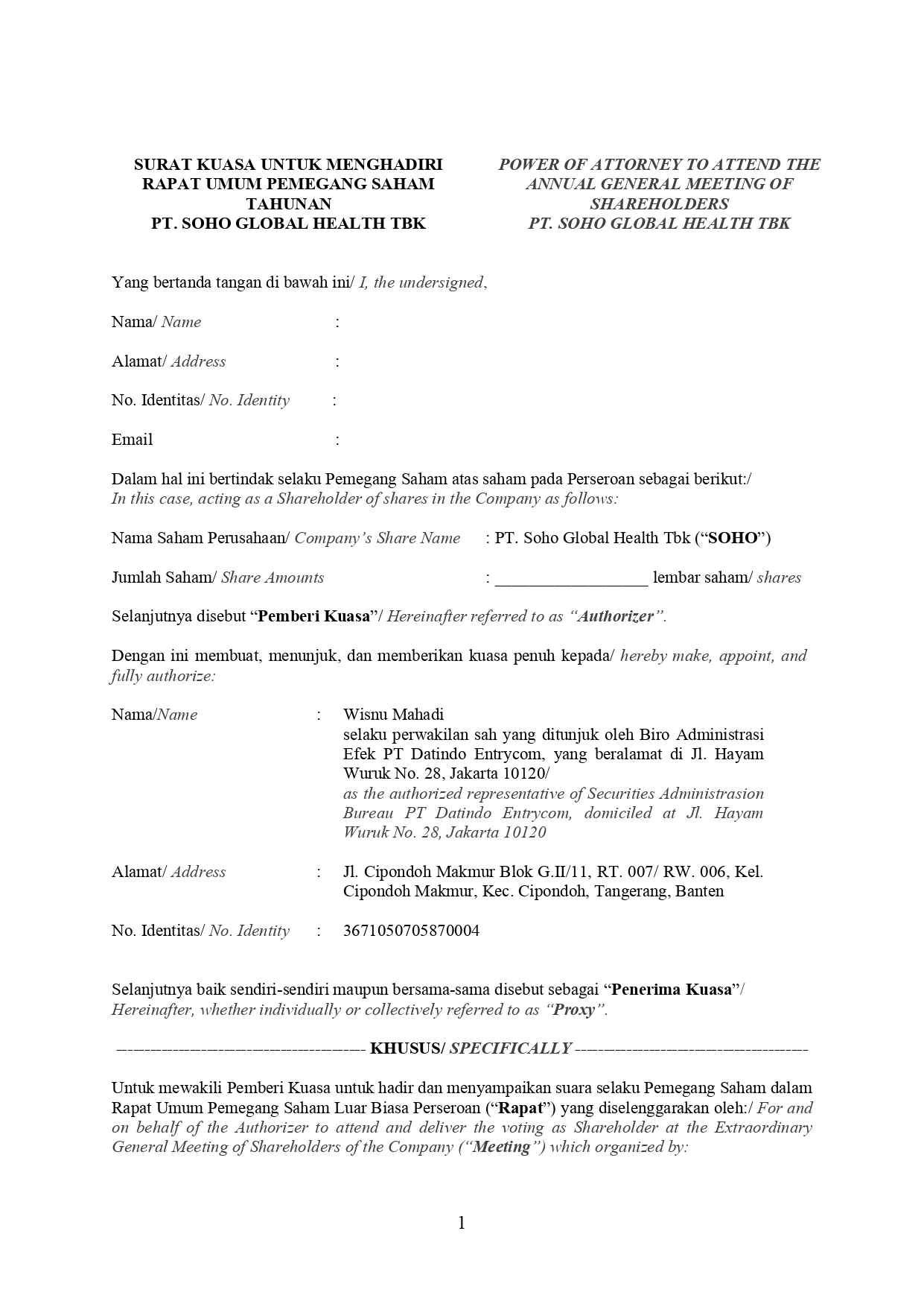 [TEMPLATE] Power Attorney to Attend Annual General Meeting Shareholders Financial Year 2024 - General