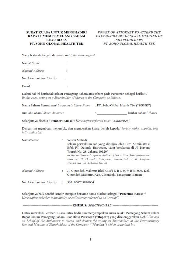 [TEMPLATE] Power Attorney to Attend Extraordinary General Meeting Shareholders 2025 - Independent Representative