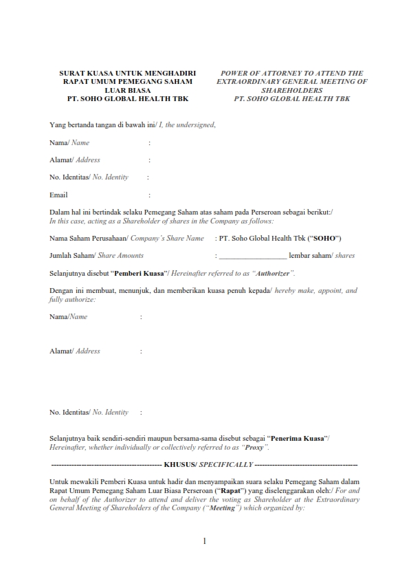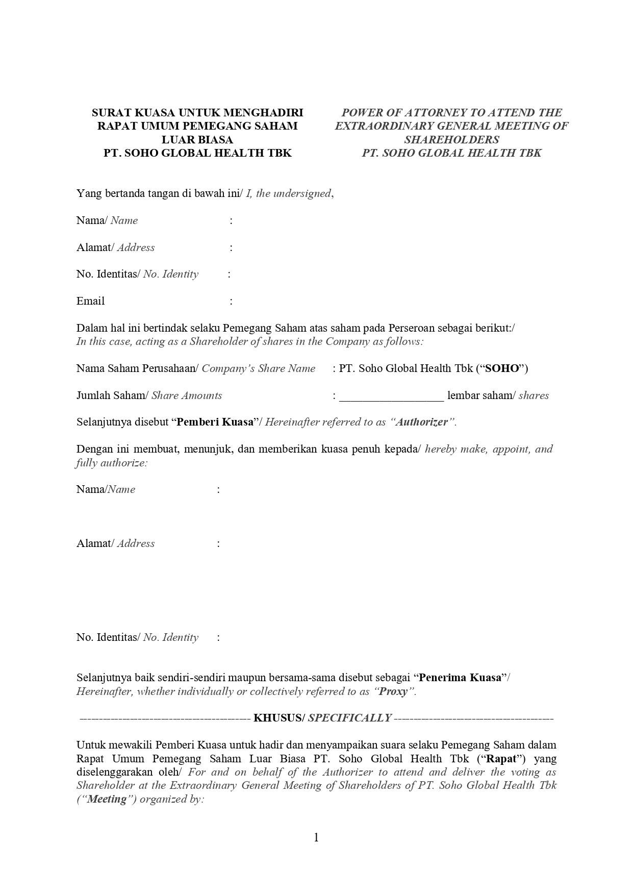 [TEMPLATE] Power Attorney to Attend Extraordinary General Meeting Shareholders 2025 – General