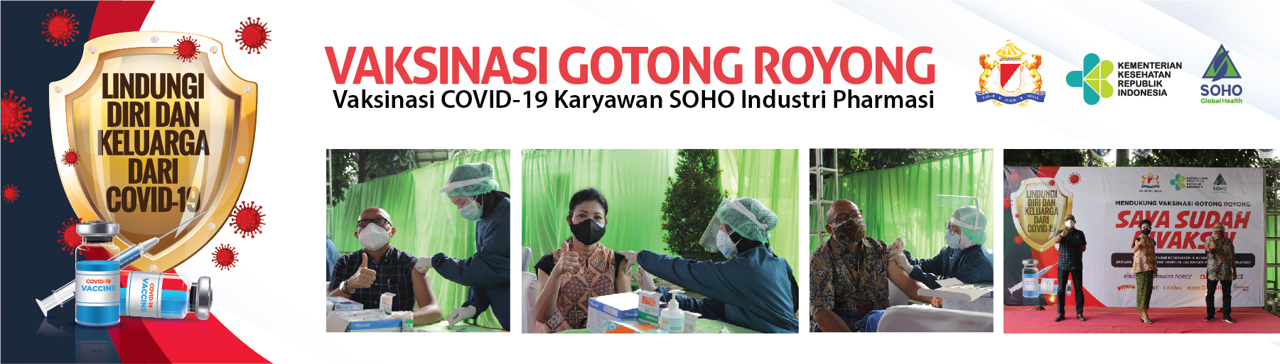 SOHO Global Health, as a company operates in the healthcare sector, is committed to participate in VGR to accelerate the recovery of health and the national economy. Monday, June 28, 2021 at the factory area of PT. Soho Industri Pharmasi on Jl. Pulogadung No. 6, SOHO Global Health marked the implementation of the first batch of VGR which was given to 500 employees and families who are located in the Greater Jakarta area.