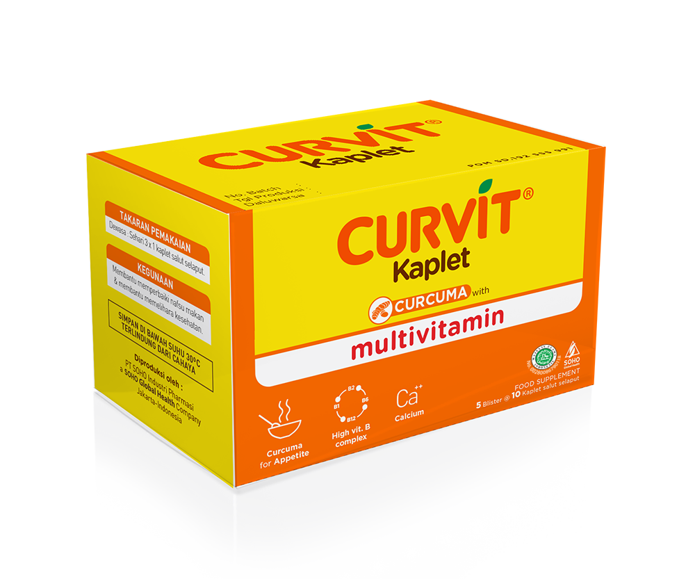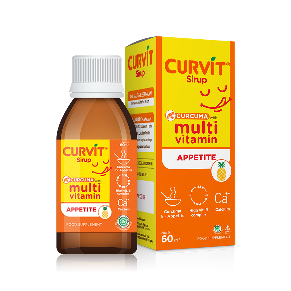 Each 5 ml of CURVIT® syrup contains: Curcuminoid 2 mg, Beta Carotene 10% 4 mg, Dexpanthenol 3 m, Vitamin B1 3 mg, Vitamin B2 2 mg, Vitamin B6 5mg, Vitamin B12 5 mcg, Calcium gluconate 300 mg