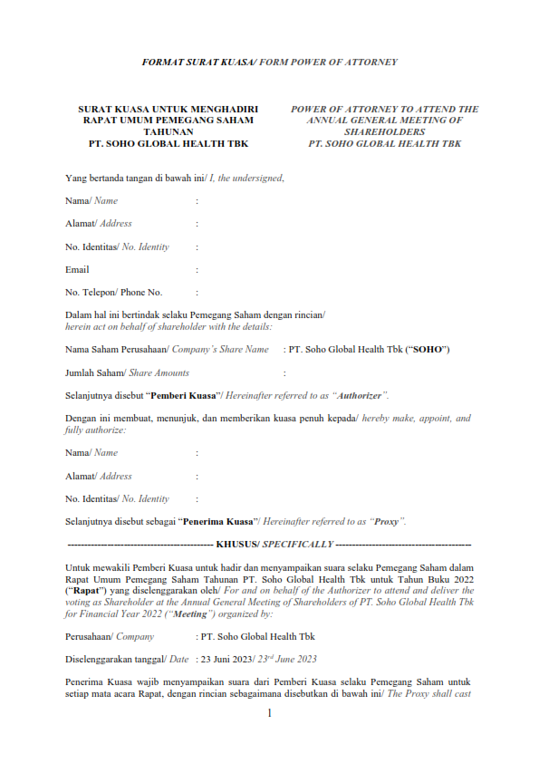 [TEMPLATE] Power Attorney to Attend Annual General Meeting Shareholders Financial Year 2022 - General