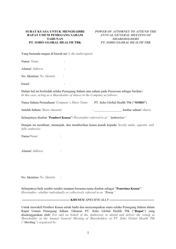 [TEMPLATE] Power Attorney to Attend Annual General Meeting Shareholders Financial Year 2024 - General