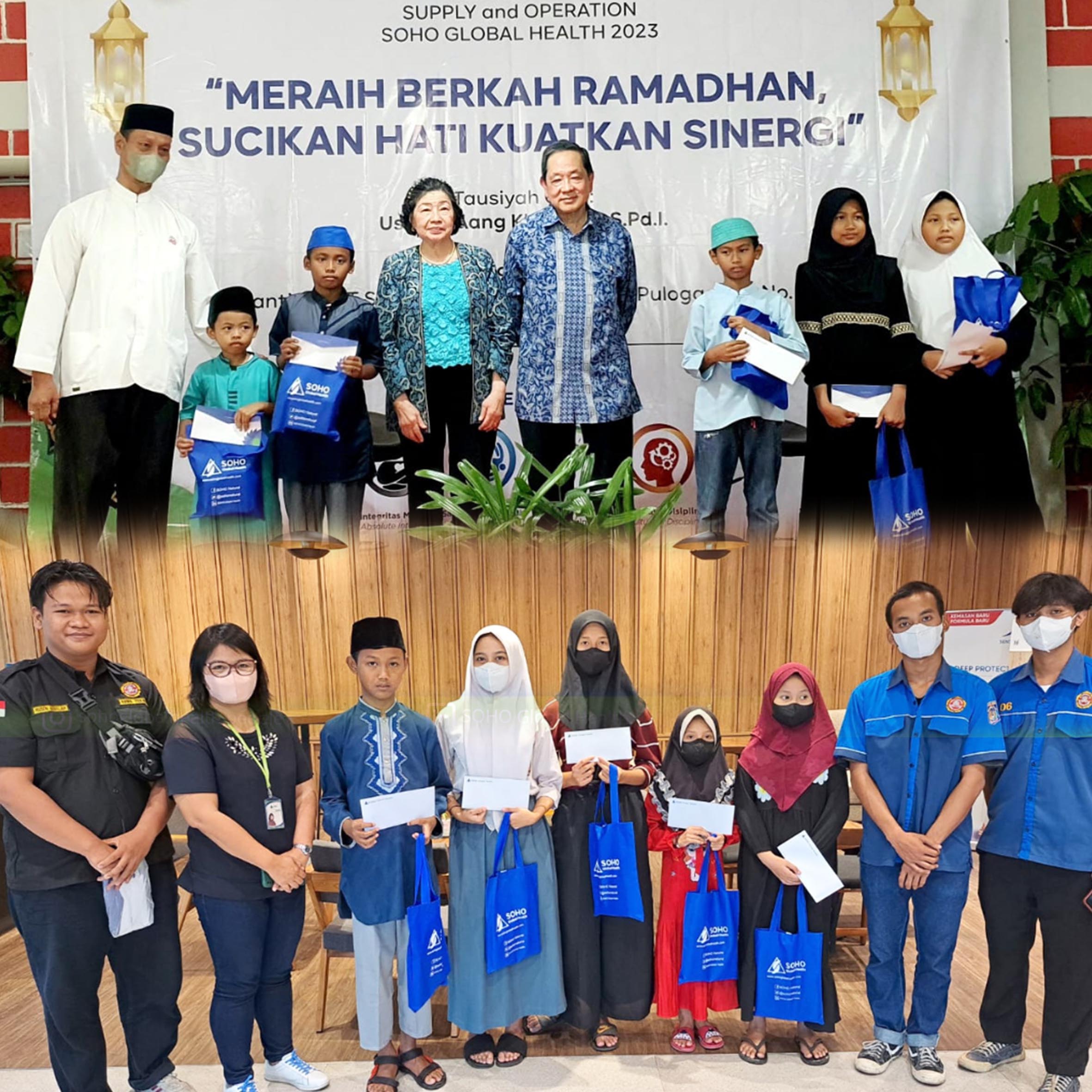The symbolic distribution of donations was held at the Iftar event at the Supply & Operations Business Unit on March 29, 2023, and was handed over directly by Mr. Tan Eng Liang (President Commissioner of PT SOHO Global Health Tbk) and accompanied by Mrs. Mary Tan.