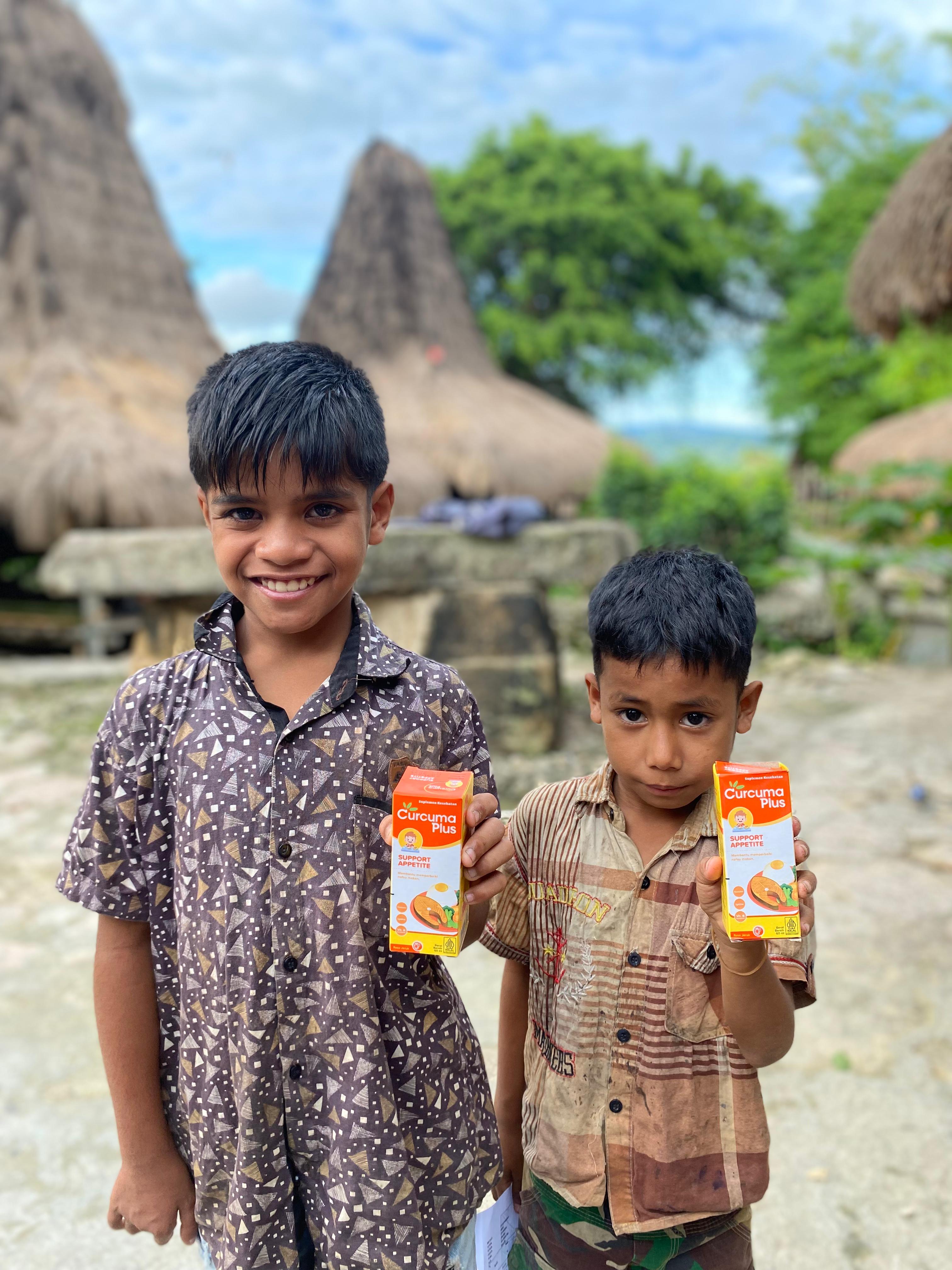Curcuma Plus supports the target of reducing national stunting rates by participating in a collaboration with the Gabungan Perusahaan Farmasi Indonesia (GPFI) in a program to distribute vitamins and health supplements to hundreds of children in East Flores, specifically in Lato Village, Titehena District, on July 8th and 9th, 2023